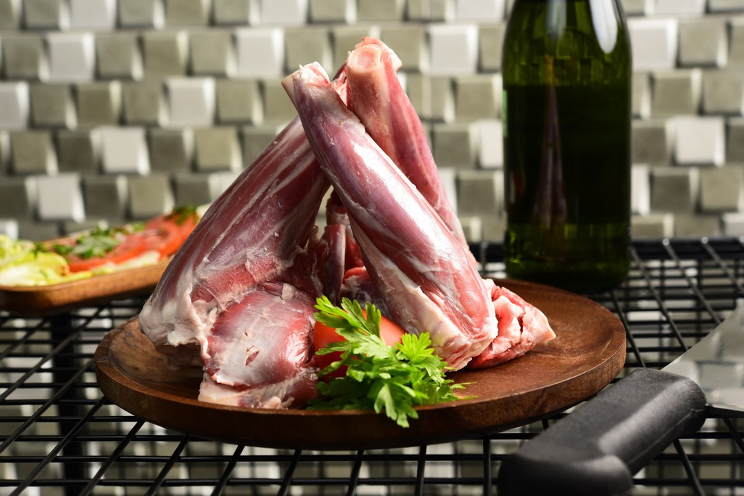 فخذ غنم طازج: جزء من الخروف المأخوذ من منطقة الساق. تُعد من أكثر قطع اللحم طراوةً ونكهةً عند طهيها بشكل صحيح. اللحم الطازج يضمن الحفاظ على النكهة الأصلية والقوام المميز للحم عند الطهي.